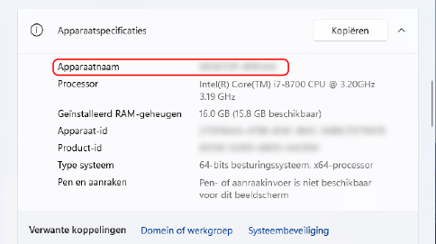In [Apparaatspecificaties] bekijkt u de computernaam.