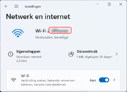 Bekijk de tekenreeks tussen haakjes ( ) van Wi-Fi.