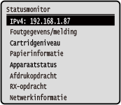 op het configuratiescherm klikt. Met behulp van dit scherm controleert u de informatie van het apparaat, gebruik en logboeken, netwerkinstellingen, en foutinformatie. Scherm [Statusmonitor]