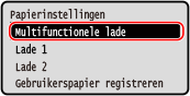 Als u altijd hetzelfde papier in de multifunctionele invoer gebruikt, kunt u papierformaat en -soort registreren. Dit verhindert dat het scherm voor de papierinstellingen verschijnt, wat u de moeite van het instellingen kiezen bespaart.
