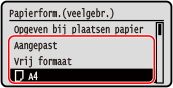 Als u het formaat van het te laden papier vaak moet veranderen, selecteert u [Vrij formaat]. Dit vermindert het het aantal stappen dat iedere keer moet worden verricht om de instellingen te veranderen. Tevens kunt u instellen dat er een foutmelding verschijnt als het in het printerstuurprogramma ingestelde papierformaat verschilt van het formaat van het geladen papier.
