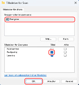 Vælg afkrydsningsfeltet [Del denne mappe], og klik på [Tilladelser].
