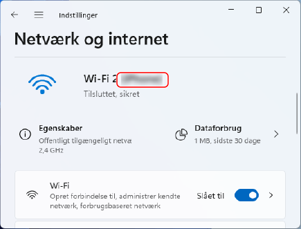 1 | Klik på [Egenskaber] for det tilsluttede netværk. |