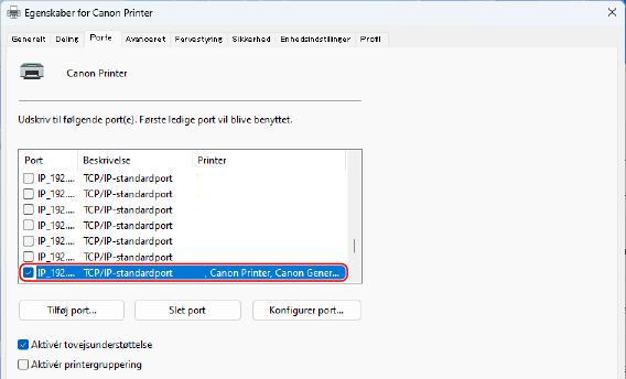 På fanen [Porte] skal du kontrollere, at afkrydsningsfeltet [Aktiver tovejsunderstøttelse] er valgt.