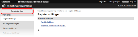 Hvis du ændrer indstillingerne ved hjælp af enten kontrolpanelet eller Fjern-UI, kan du genstarte maskinen ved hjælp af afbryderen eller Fjern-UI.
