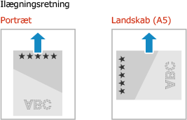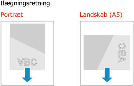 Ved ilægning af papir med et logo skal du være opmærksom på retningen og hvilken side, der vender opad.