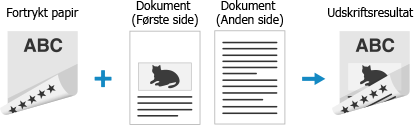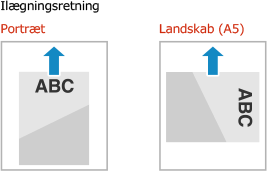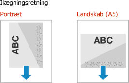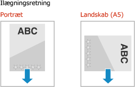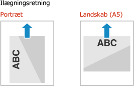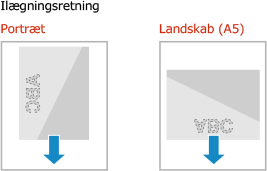 Som standard varierer den retning, som papiret skal ilægges og den side, det skal udskrives på afhængigt af, om du vil udskrive på den ene eller begge sider.