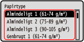 Hvis du ofte har brug for at ændre det papir, der skal ilægges, skal du indstille det til [Frit]; dette vil reducere antallet af nødvendige trin for at ændre indstillingen hver gang. Bemærk dog, at denne indstilling lader maskinen udskrive, selvom der er uoverensstemmelse mellem papirtypeindstillingen i printerdriveren og den papirtype, der rent faktisk er lagt i maskinen.