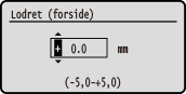 Angiv justeringsbredden ved at vælge en positiv værdi, der justerer positionen til højre på papiret, eller en negativ værdi, der justerer positionen til venstre på papiret.
