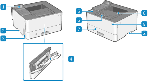 Åbnes, hvis der skal udskiftes tonerpatron eller hvis der opstår papirstop inde i maskinen.