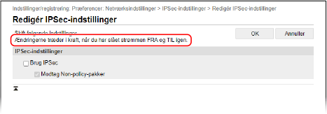 Log på Fjern-UI i administratortilstand  [Indstillinger for tonerlevering]  [Tilslut] i [Serverforbindelse]  [OK]  [Rediger] i [Indstillinger for tonerlevering]  [Aktivér]  [OK]  Konfigurer ved at følge instruktionerne på skærmen. |
