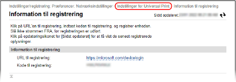 Klik på [Indstillinger for Universal Print] øverst på skærmen for Fjern-UI.