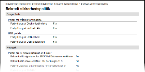 Du kan kontrollere sikkerhedspolitikkens elementer og deres brug fra Fjern-UI på skærmen [Bekræft sikkerhedspolitik].