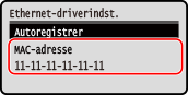 Du kan få vist den MAC-adresse, der er indstillet til maskinen, når maskinen er tilsluttet det kabelbaserede LAN.