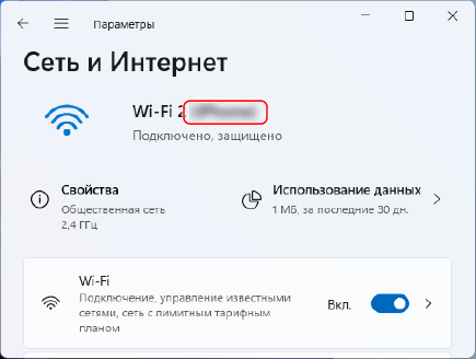 Просмотрите строку в скобках «( )» для сети Wi-Fi.
