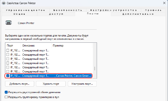 На вкладке [Порты] удостоверьтесь в том, что установлен флажок [Разрешить двусторонний обмен данными].