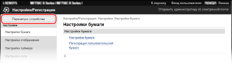 Когда настройки изменяются с панели управления или из удаленного ИП, перезапустить аппарат можно с помощью переключателя питания или удаленного ИП.
