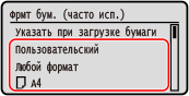 Если приходится часто изменять загружаемую бумагу, задайте [Любой формат]; это сократит число действий, требуемых для изменения настройки каждый раз. Можно также задать отображение сообщения об ошибке, когда настройка в драйвере принтера значительно отличается от формата загруженной бумаги.