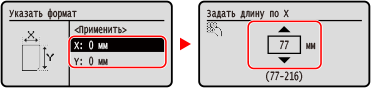 Когда бумага загружается в многофункциональный лоток, на панели управления открывается следующий экран. Задайте на нем формат и тип загруженной в лоток бумаги.