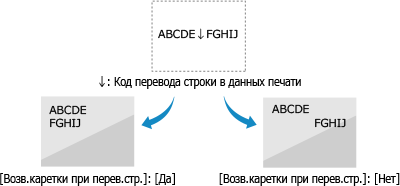 Выберите, требуется ли добавлять символ возврата каретки (CR), когда аппарат получает код перевода строки (LF). Если выбрано значение [Да], положение печати перемещается в начало следующей строки, когда аппарат получает код перевода строки LF. Если выбрано значение [Нет], положение печати перемещается на следующую строку, непосредственно под полученным кодом перевода строки LF. |