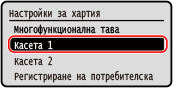 Изберете касетата за хартия, чиято настройка искате да промените, и натиснете