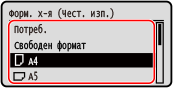 Ако често трябва да сменяте хартията, която ще заредите, задайте [Свободен]; това ще намали броя на стъпките, необходими за промяна на настройката всеки път. Въпреки това, имайте предвид, че тази настройка позволява на устройството да печата дори ако има несъответствие между настройката за тип хартия в драйвера на принтера и типа хартия, действително заредена в устройството.