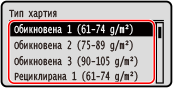 Изберете вида на хартията, заредена в касетата за хартия, и натиснете