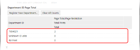 Извежда се екранът [Department ID Management].