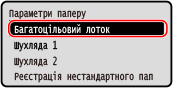 Якщо ви завжди використовуєте той самий папір у багатоцільовому лотку, можна зареєструвати його розмір і тип. Екран параметрів паперу перестане відображатися, і вам не доведеться налаштовувати параметри.