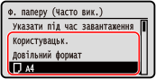 Виберіть [Указати під час завантаження паперу] і натисніть клавішу
