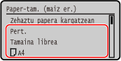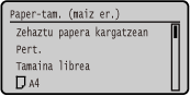 1. urratsean pantailan bistaratzen den paper-tamaina alda dezakezu. Erabili ez diren paper-tamainak ezkutatzea