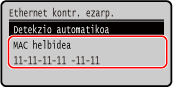 Makina kabledun LAN batera konektatuta dagoenean, makinara ezarritako MAC helbidea begira dezakezu.