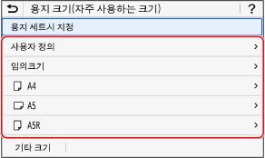 용지를 가로 방향으로 적재하는 경우 [A5]를 선택합니다. 용지를 세로 방향으로 적재하는 경우 [A5R]을 선택합니다.