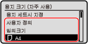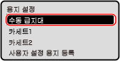 수동 급지대에서 항상 동일한 용지를 사용하는 경우, 용지 크기와 종류를 등록할 수 있습니다. 이렇게 하면 용지 설정 화면이 표시되지 않으므로 설정을 구성하는 수고를 덜 수 있습니다.