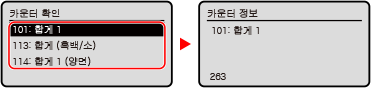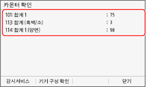 제어판의 [홈] 화면에서 [카운터 확인]을 누릅니다.