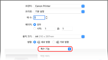 인쇄 옵션 팝업 메뉴에서 [특수 기능]을 선택합니다.