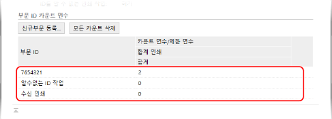 부서 ID 관리를 활성화한 경우 각 부서 ID에 대해 인쇄된 페이지 수를 볼 수 있습니다.