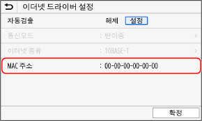 기기가 유선 LAN에 연결된 경우 기기에 설정된 MAC 주소를 볼 수 있습니다.