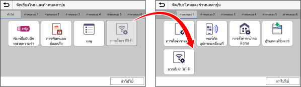 คุณสามารถจัดเรียงปุ่มบนหน้าจอ [Home] และย้ายปุ่มไปยังแท็บอื่นๆ