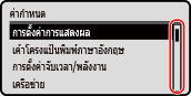 เมื่อแถบเลื่อนปรากฏขึ้นบนหน้าจอ แสดงว่ามีรายการหรือข้อมูลที่ไม่สามารถแสดงบนหน้าจอได้ครบถ้วน ใช้  หรือ เพื่อเลื่อนหน้าจอไปตามทิศทางที่กด รายการที่เลือกไว้ปัจจุบันจะถูกเปลี่ยนกลับ