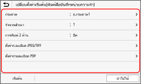 การเปลี่ยนแปลงการตั้งค่าเริ่มต้น (รุ่นแผงสัมผัส)