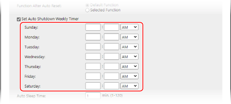 ให้เลือกกล่องกาเครื่องหมาย [Set Auto Shutdown Weekly Timer]