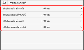 ระบุทิศทางการปรับโดยใช้ปุ่ม + และปุ่ม - และระบุความกว้างในการปรับในหน่วย 0.1 มม.