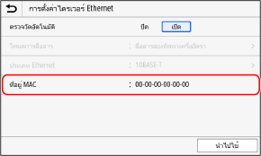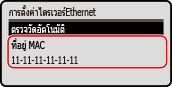คุณสามารถดูที่อยู่ MAC ที่ตั้งไว้ให้กับเครื่องได้เมื่อเครื่องเชื่อมต่อกับ LAN แบบผ่านสาย
