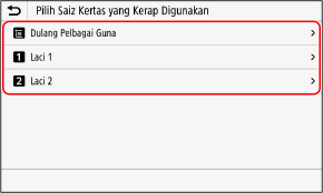 Untuk memilih saiz kertas yang tersembunyi, tekan [Saiz Lain] pada skrin tetapan kertas.