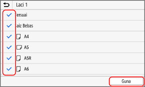 Saiz kertas yang kotak semaknya dikosongkan tidak dipaparkan pada skrin tetapan kertas.