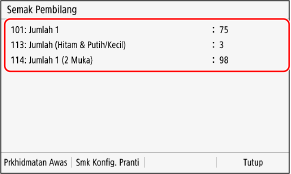 Di panel kawalan, tekan [Semak Pembilang] di skrin [Rumah].