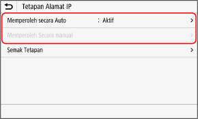 1 | Tekan [Memperoleh secara Auto]. Skrin [Tetapn Alamat IP (Memperoleh Scara Auto)] dipaparkan. |