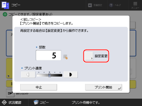 コピーの画面設定ボタンの下部に[設定あり]が表示されます。