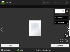 ファクスを送信する前にプレビュー画面を表示し、内容を確認してから送信できます。プレビュー画面上でページの順番を変更したり、ページを削除したりすることもできます。